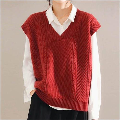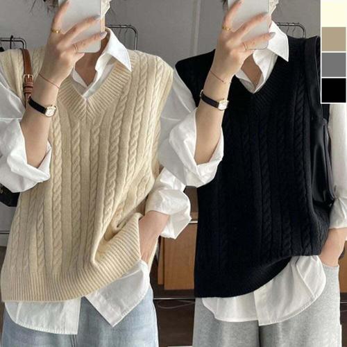 [오너클랜]인기상품 꽈배기 브이넥 레이어드 셔츠 여자 니트조끼 루즈핏 패턴 [WFLAHUW_251215]