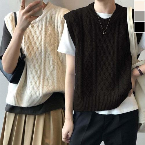 [셀럽하우스]여성 ATUM9815 꽈배기 캐주얼 니트 조끼 필수템 겨울 여자 오버