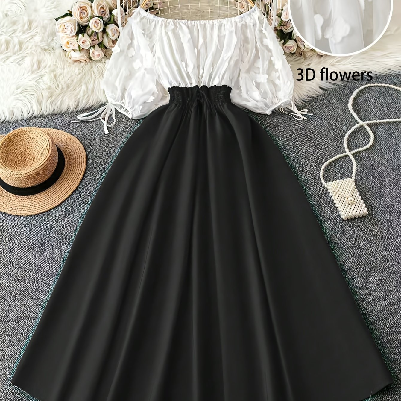 TEMU 플러스 사이즈 - 플러스 사이즈 - 플러스 사이즈 여성용 고급스럽고 우아한 오프숄더 컬러 블록 허리 A라인 드레스, 파티, 발렌타인데이 및 데일리 우아한 드레스, 봄 및 여름에 적합
