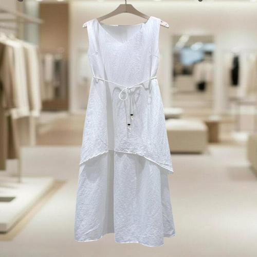 1/1+1 (시원한 드레이프 스타일) 질감이 있는 버블사 끈 나시 원피스 아이스 실크 루즈핏 원피스
