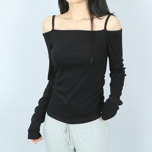 [옷자락]여자 오프숄더 끈 나시 4컬러 봄 여름 긴팔 티셔츠