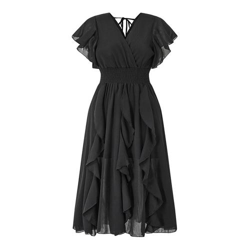[GGPX]러블리 백 끈 브이넥 프릴 롱 원피스 (GQBOW020D)
