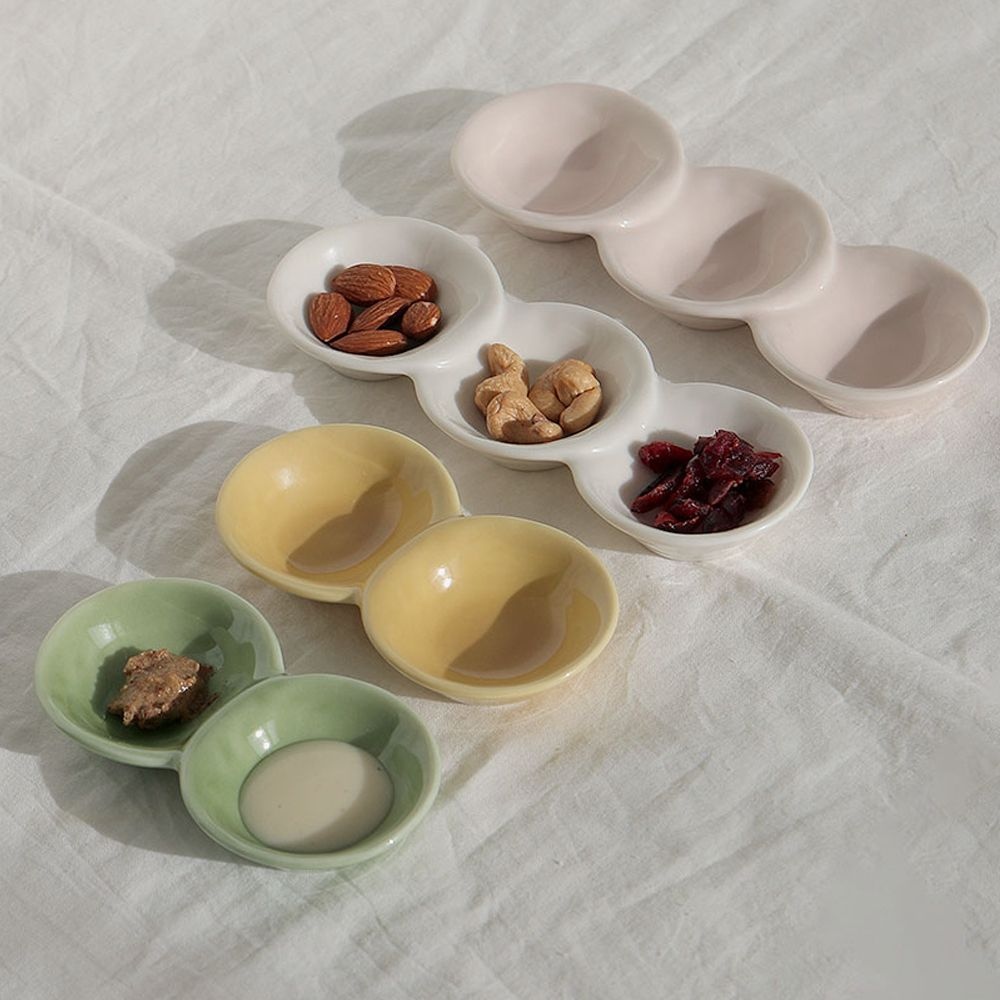 칸칸 콩 나눔접시 2칸 4color 종지 나눔 찬기 반찬그릇 2구 완두콩 소스볼