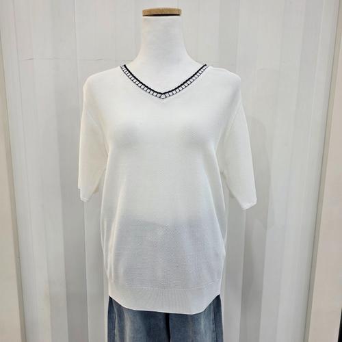 [나이스클랍]배색 브이넥 반팔 니트 ( A262PWK307 )_BP_BP