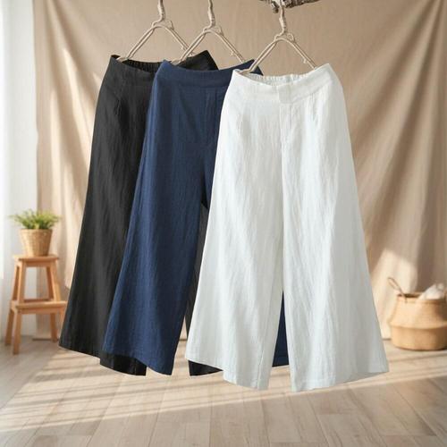 [다잇템]여성 바지 넓은 린넨혼방 나팔 체형커버