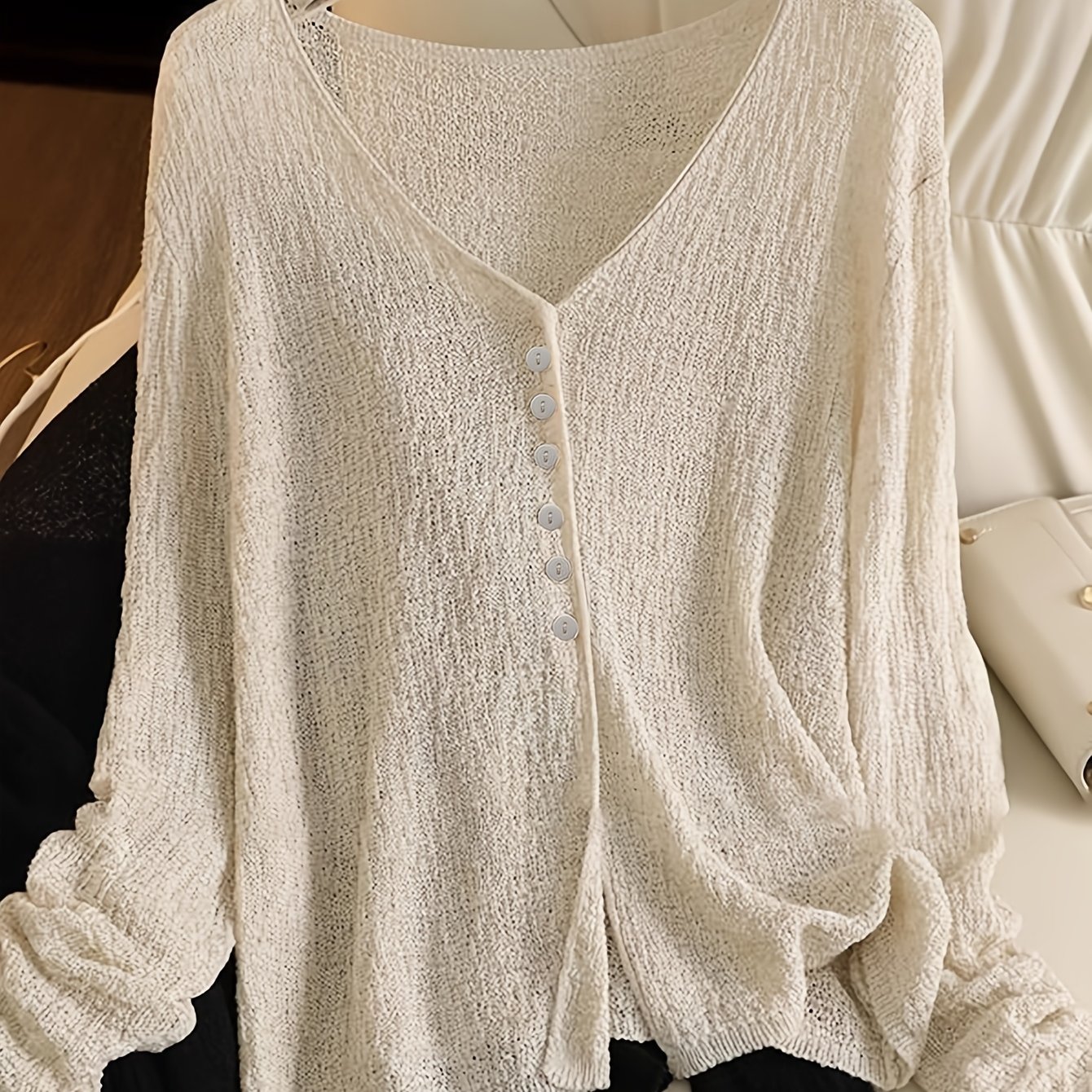 TEMU 유럽 및 미국 스타일의 여름/봄 신상 여성 패션. 세련되고 편리한 버튼형 V넥 가디건으로 완성.