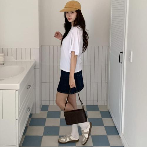 [하프클럽/]여성 루즈핏 날개소매 라운드넥 스판 반팔티