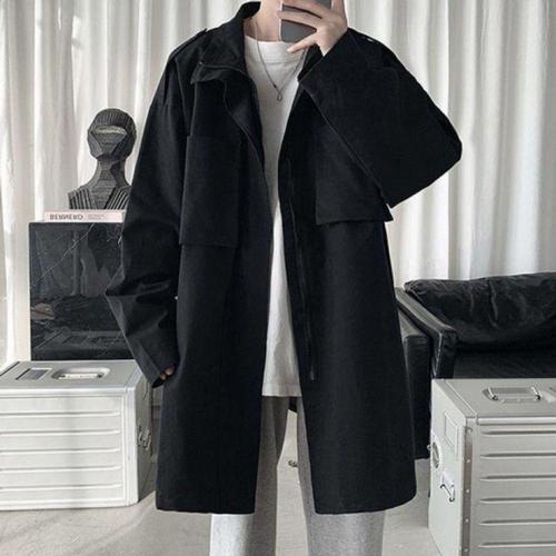 봄 가을 맞이 남성 캐주얼 비즈니스룩 하프 터틀넥 오버핏 트렌치코트 솔리드 싱글 코트 신상