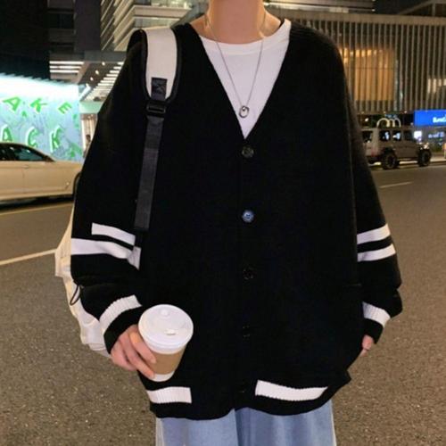 [셀럽하우스]남여공용 PQCD1386 여유핏 배색 선 심플 캐주얼 니트가디건