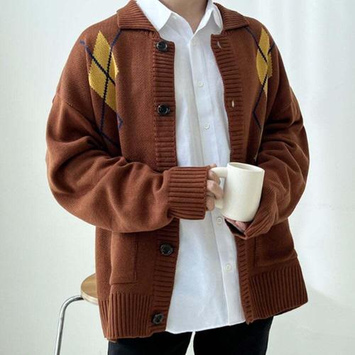[셀럽하우스]패치 HLQM9389 남자 데일리 오버핏 가디건 클래식 니트가디건