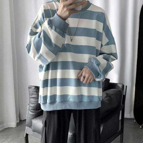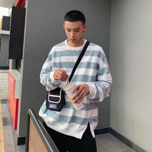 [셀럽하우스]남성 KEEK6013 맨투맨 줄무늬 포인트 오버핏 니트 티셔츠