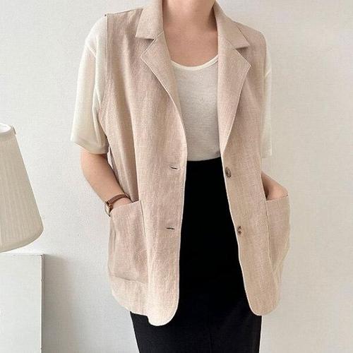 [엄지척]가벼운 시원한 린넨 조끼 여름 베스트 고급스러운 세_19801762_667501