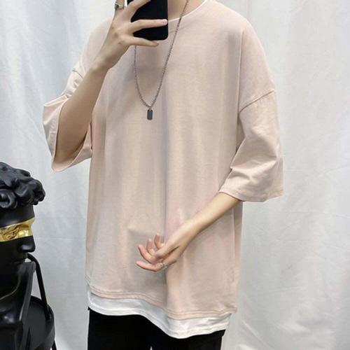 [셀럽하우스]박스티 BJZP7112 오버사이즈 2컬러 레이어드 남성 무지 반팔티