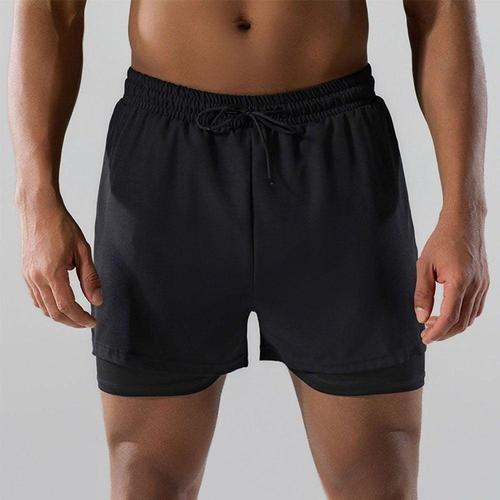 남성용 러닝 반바지 2 in 1 이중 레이어 스포츠 반바지 운동복 헬스 피트니스 숏팬츠 트레이닝 조깅 바지 남성 의류