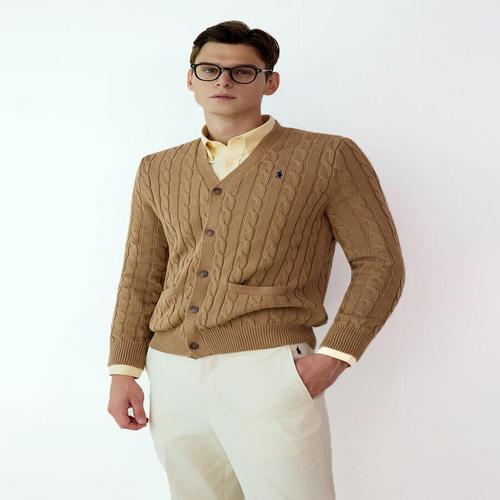 [셀럽하우스]남성 XGTV4530 학생 봄 가을 브라운 꽈배기 두꺼운 단추가디건