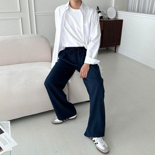 6컬러 남자 린넨 와이드 밴딩 팬츠 남성 일자 바지