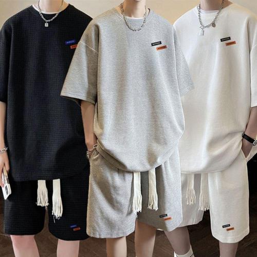 [오너클랜]인기상품 남성 와플패턴 반팔 반바지 심플 멘즈셋업 코디 세트 [WFHT6TO_260204]