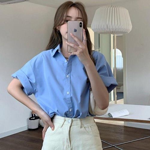 여성 여름 데님 반팔 셔츠 청 남방 NB0114S 빅사이즈 루즈핏