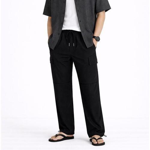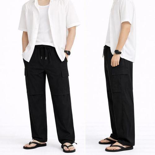 wassup 남자 카고바지 여름용 일자핏 얇은 옷 널찍하다 남성 작업복바지 밴딩 슬랙스