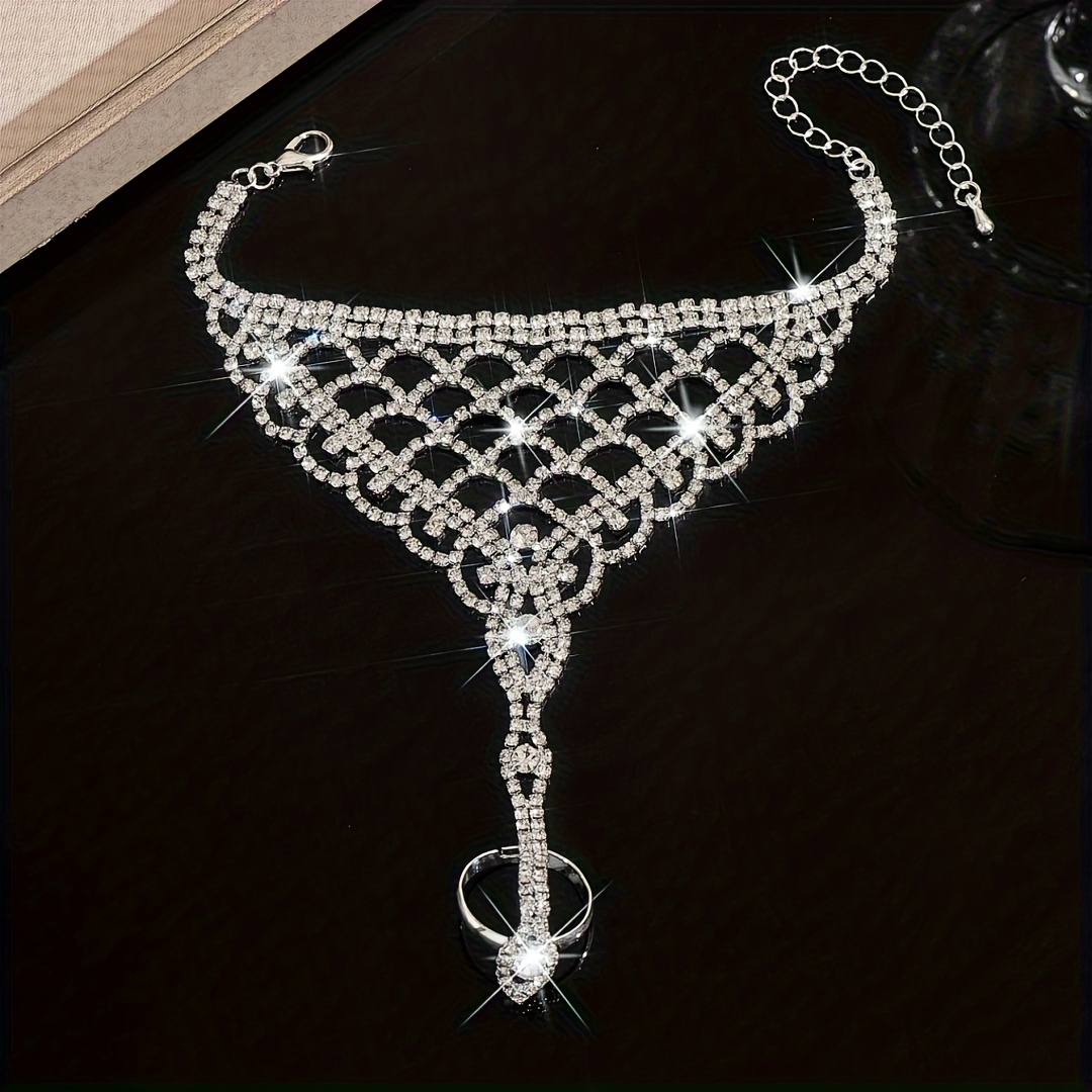 TEMU 눈길을 사로잡는 골든 라인스톤 팔찌 반지, 정교한 라인스톤 주얼리, 결혼 기념일을 위한 패션 애호가를 위한 선물