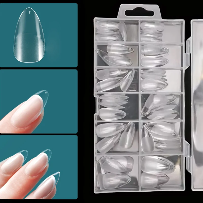 600PCS 짧은 네일 팁 타원형 하프 커버 거짓 팁 손톱에 누르기 아몬드 혼합 크기 짧은 스타일 울트라 얇은 Traceless 네일 팁