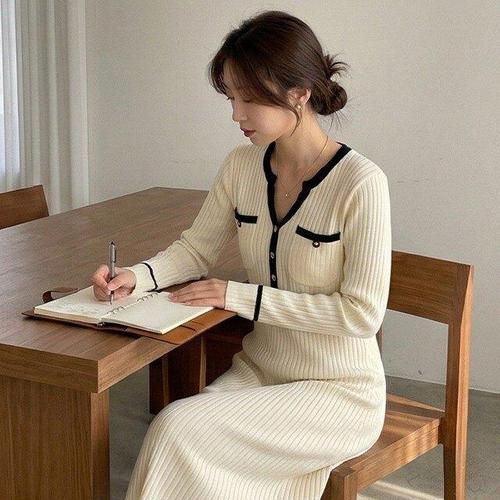 [핑크엘리제]니트 슬림핏 격식룩 데이트룩 니코지아롱원피스