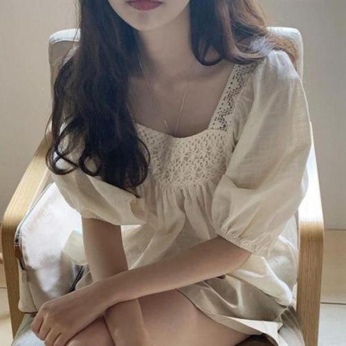 [에이치플러스몰]여성 여름 러블리 스퀘어넥 펀칭 레이스 블라우스
