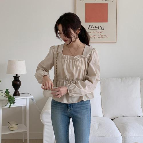 [옷자락] 여자 스퀘어넥 셔링 포인트 심플 블라우스