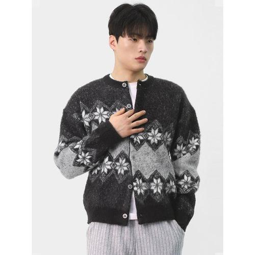 [빌리버스]남성 데일리 감성 노르딕 눈꽃 브러시 코지 니트 가디건 BCON019