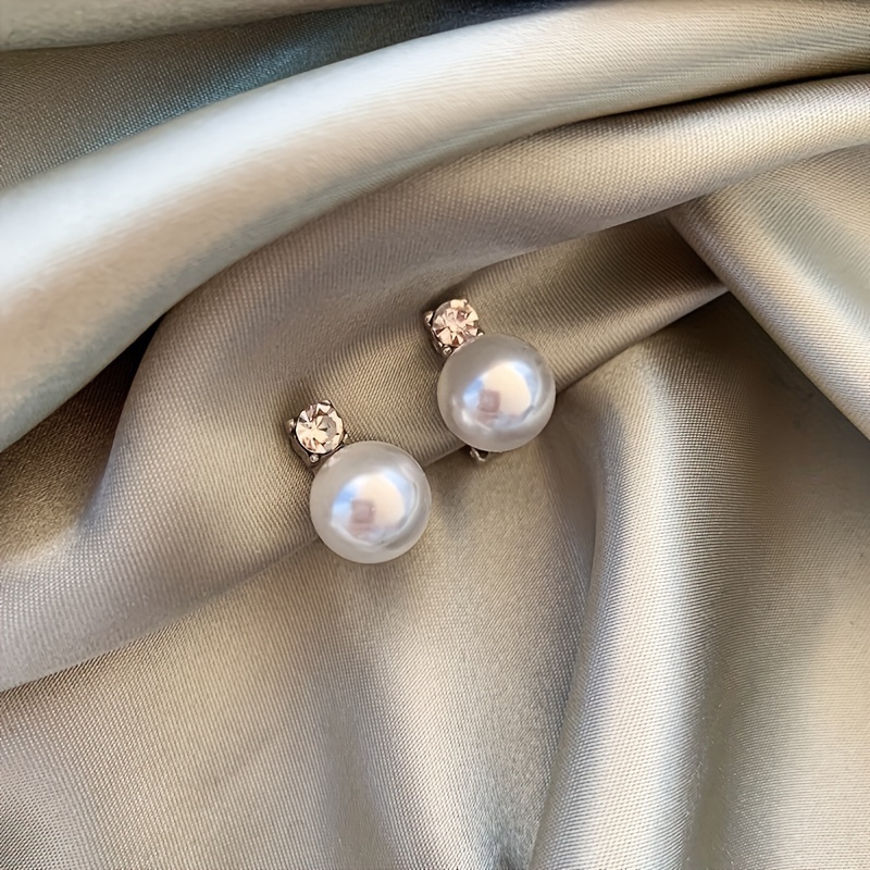 TEMU 여성용 우아한 레트로 인조 진주 지르코니아 삼각 귀걸이 한 쌍, 귀에 구멍 없이 착용 가능