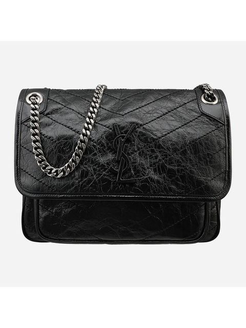 생로랑 크링클 빈티지 레더 블랙 모노그램 니키 미디움백 실버 체인 스트랩 블랙 633158-0EN04-1000