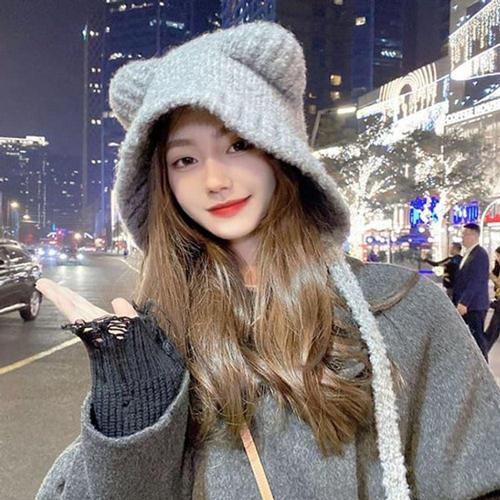 고양이귀 여성 털모자 겨울 털두건 방한 니트 모자 겨울모자 WFIXXM5