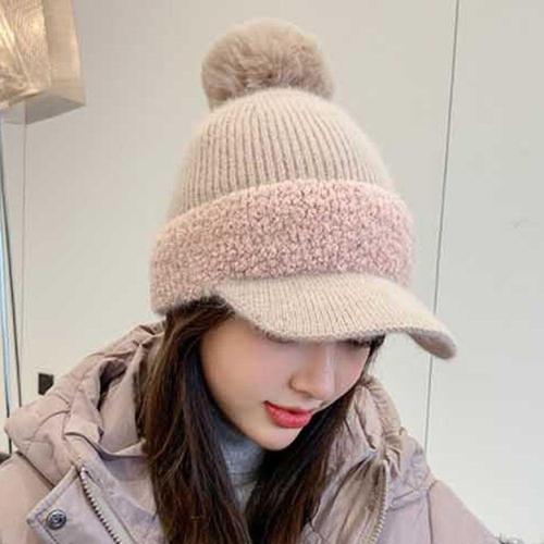 방한 니트캡 챙모자 겨울 여성 모자 왕방울 털모자 WB7284C