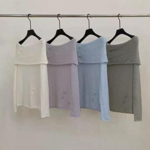 [셀럽하우스]시원하고 TDEX7809 신축성 좋은 여성 오프 숄더 여름 반팔 니트