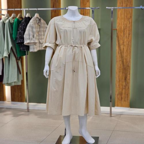 [발렌시아]5부 소매 라운드넥 집업 플레어 롱 원피스