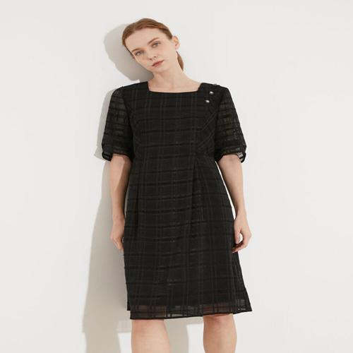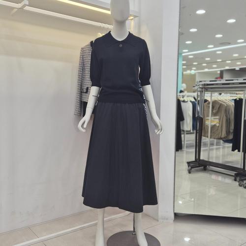 [꼼빠니아]반팔 니트 배색 플레어 원피스 CAFU4-WSO200_JK