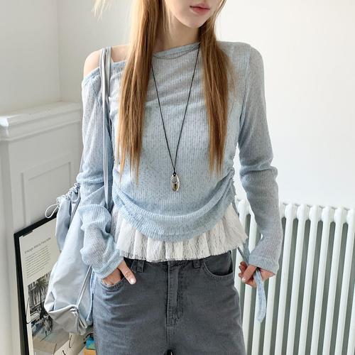 [시크블랙]란토라 언발 셔링 니트 레이스 프릴 나시 세트