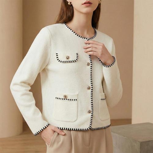 [로코엘라] 밀렌 울 브렌드 하이넥 립 니트 여성 가디건