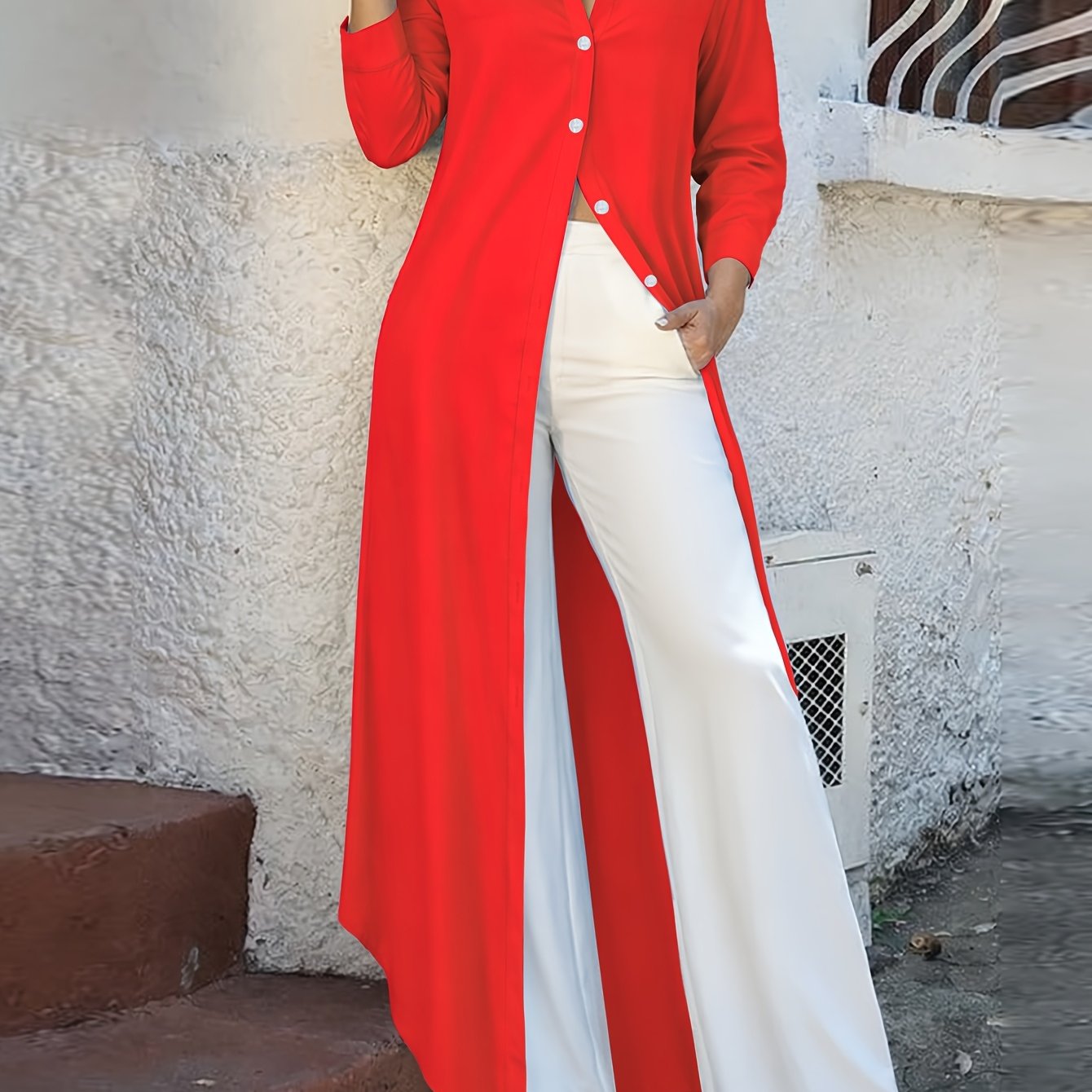 TEMU 플러스 사이즈 - 플러스 사이즈 - 단색 투명 버튼 롱 셔츠
