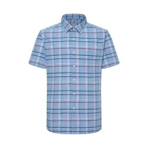 [닥스][아울렛] 미듐체크 반팔셔츠 레귤러핏 블루