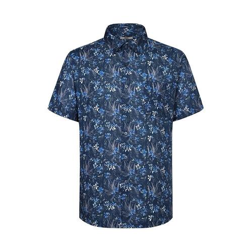 [닥스][아울렛] 면혼방 프린트 반팔셔츠 레귤러핏 네이비