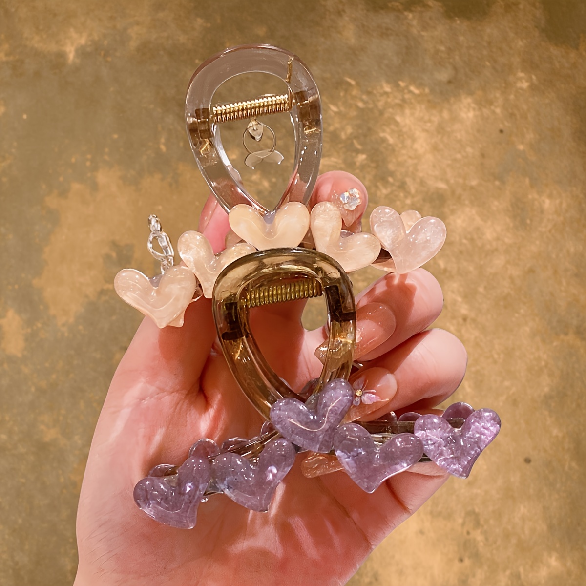 TEMU 여성용 하트 모양 멀티 컬러 헤어 집게 클립 2개, 우아하고 우아함, 강한 고정력, 미끄러지기 쉽지 않음, 일상 사용에 적합