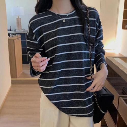 디멜디 여성용 잔스트라이프 루즈핏 데일리 긴팔 티셔츠