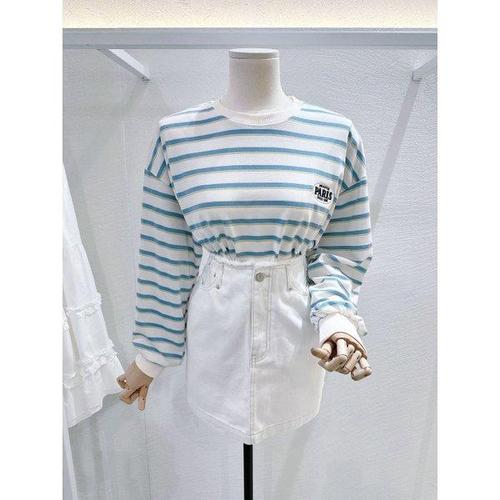 세미크롭 맨투맨 여성 2컬러 스트라이프 긴팔 티셔츠
