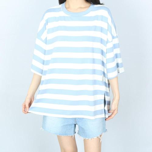 [파라노말샵]4색 단가라 라벨 트임 오버핏 반팔 티셔츠 (파라노말