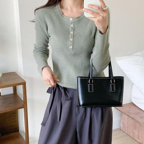 [SBD] 티셔츠 니트 여성 밑단 골지 포인트 단추 라운드넥