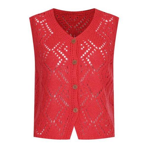 [샵앤]국산 여성 V넥 단추오픈 뜨개 다이아 펀칭 니트 조끼 BOM-WVS-21210-레드