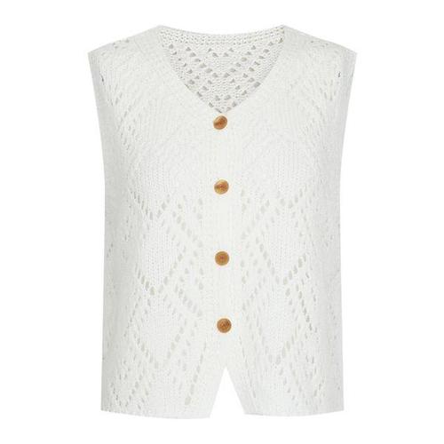 [샵앤]국산 여성 V넥 단추오픈 뜨개 다이아 펀칭 니트 조끼 BOM-WVS-21210-아이보리