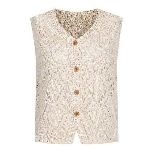 [샵앤]국산 여성 V넥 단추오픈 뜨개 다이아 펀칭 니트 조끼 BOM-WVS-21210-베이지
