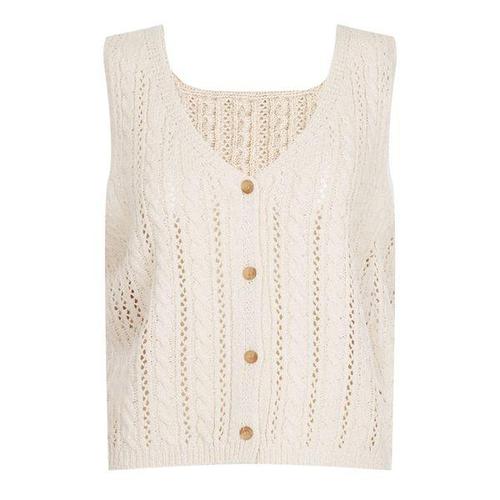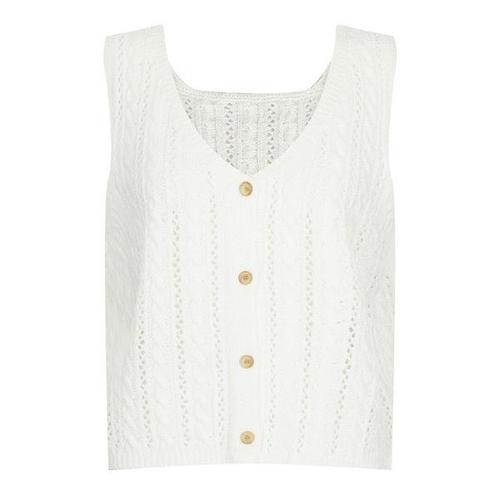 [샵앤]국산 여성 Y단추 오픈 꽈배기 뜨개 펀칭 니트 조끼 BOM-WVS-21208-아이보리